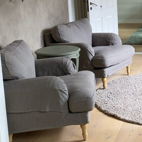 God å sitte i, vært lesestol på barnerom. Blir god som gull med nytt trekk 😊