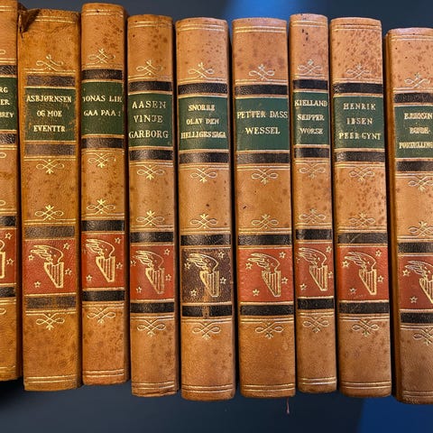 Hans E. Kinck Hvitsymre i Utslaatten bok med tillegg av tre andre noveller. Inneholder illustrasjoner og fargetrykk av Thorbjørn Egner. Utgitt av Aschehoug Forlag.