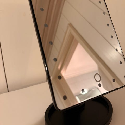 Pent brukt sminkespeil fra Clas Ohlson. Dimbare 24 V pærer, alle virker. Koster 599 kr som ny.