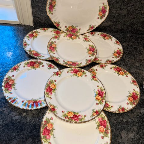 Noen som selger Royal Albert Old Country Roses etasje fat må være i denna fargen å ikke blå