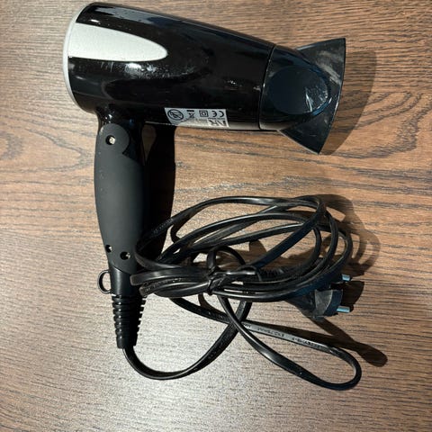 Bomann hårføner i svart og sølvfarge. Elektrisk hårføner med ledning, egnet for tørking av hår. Noen riper se bilder. Fungerer som den skal.