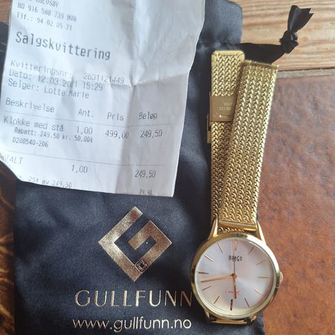 Helt ny, ubrukt dameklokke selges til kr. 100,- Farge: lilla, med noen strass stener. Må sette inn batteri selv.