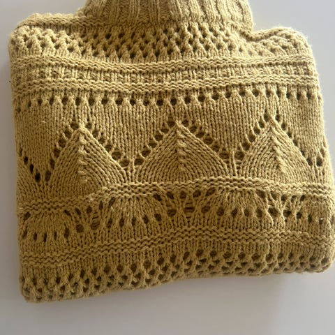 Hjemmestrikket genser. Lys gul, mykt og godt garn. Str. 3xl. Ble alt for stor for meg. Jeg er 170cm høy. Kan være høyere enn det også. Ubrukt