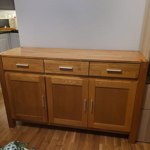 Pent brukt skjenk med hjul. Noen bruksmerker, kan eventuelt trenge et strøk maling.