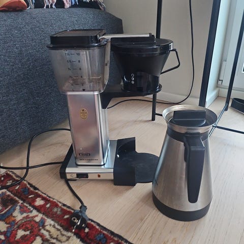 Selger kaffemaskin. Moccamaster 1,25 L Renset og klar til nye eiere, som ønsker god kaffe.