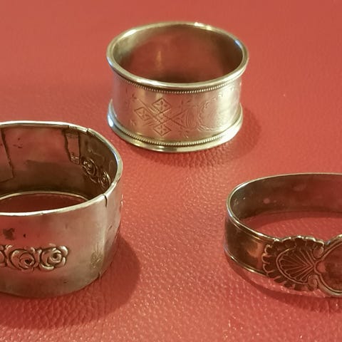 Vintage serviettholdere x 8, karaffelkork, askebeger. Sølvplett?
