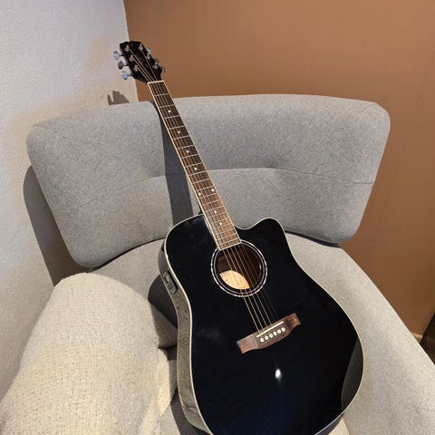 Morgan W-01CEBKCW akustisk gitar med svart og hvitt mønster. Med Fusion bæreveske.
