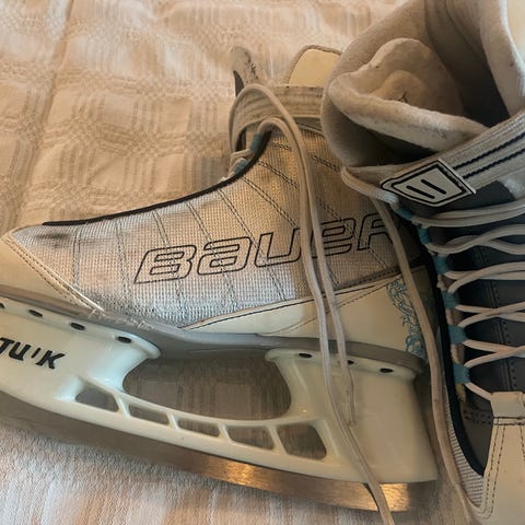 Bauer ishockeyskøyter i størrelse 42. Skøytene er utformet for ishockey og har en svart og hvit fargekombinasjon. Passer for bruk på is for ishockeyspill. Ubrukte