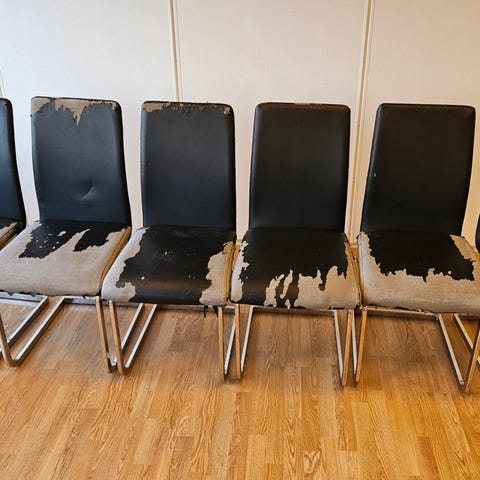 Veldig behagelige stoler. Teknisk veldig bra men noen av stolene er slitt i "skinnet". Gis bort ved henting