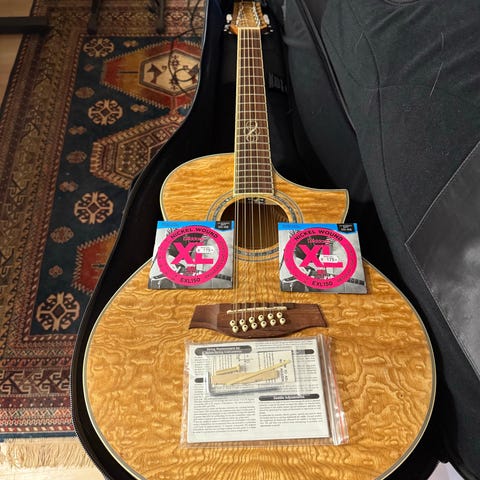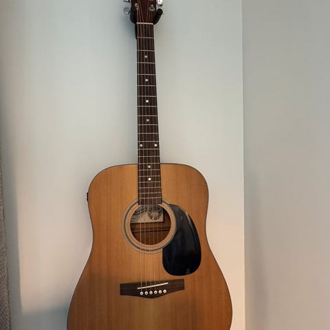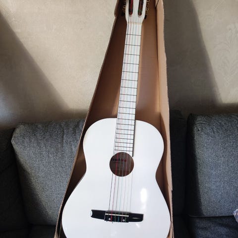 Lutt selges rimelig! Flott instrument, men trenger en liten oppgradering i form av nye strenger. Reim i fløyel følger med.