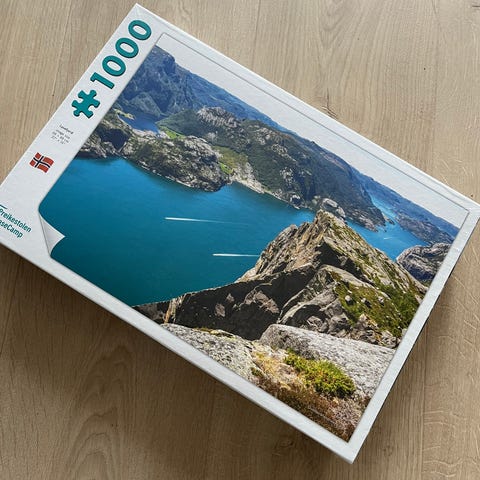 Uåpnet pusslespill av prekestolen, 1000 brikker. 150 kr
