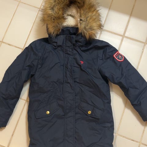 Vinterjakke til barn. Str 128. Brukt 1-2 ganger. Fremstår som ny. Litt lengde ,litt som en parkas,så er veldig god og varm.