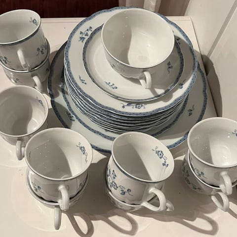 Lite brukt servise fra Firkløverens serie Blå Herregård. Får fortsatt kjøpt deler til dette ☺️ Klassisk og pent servise.