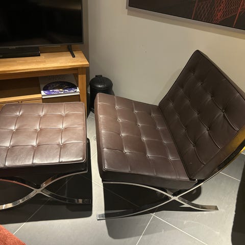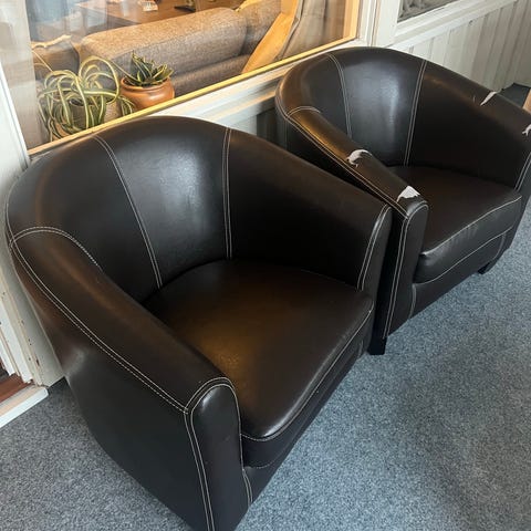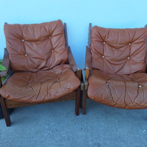 Tre stoler i skinn og jern. Komfortable å sitte på. Som nye. Ny pris på Many colors 4400. Selges 1800 pr stk