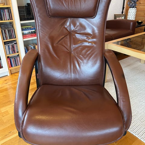 Mangler en bit ved stramming venstre side. Har ingen betydning for bruken. Kjøpt på Skeidar nypris 20 000.