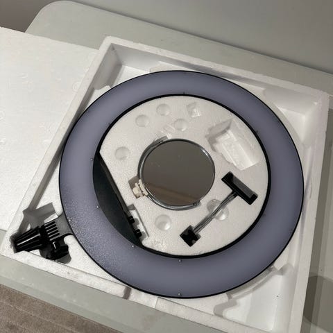Jeg har to lamper tilgjengelig, uten eske. Vi kjøpte dem som et sett med stativ, så uten eske. Vi brukte dem bare til to fotoshoots. Jeg selger dem fordi jeg bytter jobb.