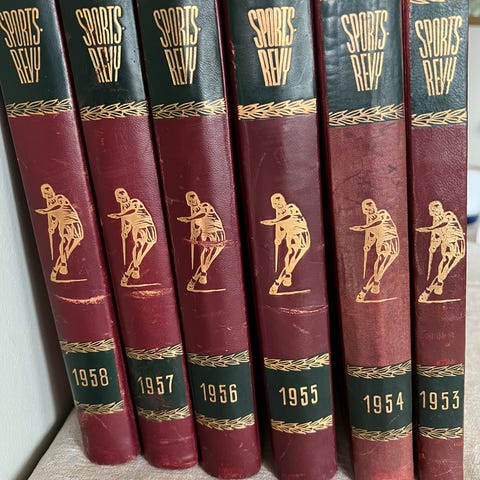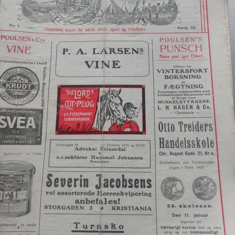 Norsk Idrætsblad bok med blader fra 1903 med tekst og bilder relatert til idrett. Boken har slitt skinnrygg og slitt omslag, samt gulnede sider som viser alder. Inneholder artikler og historisk informasjon om idrettsorganisasjoner og utøvere.