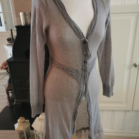 Stripete cardigan med glitter fra Dranella i størrelse S. Den er lang, ca. 80 cm.