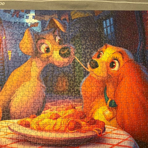 Ravensburger Lady and the Tramp puslespill med 1000 brikker.