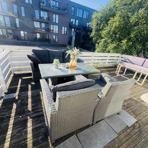 Utemøbelsett med glassbord og puter grå