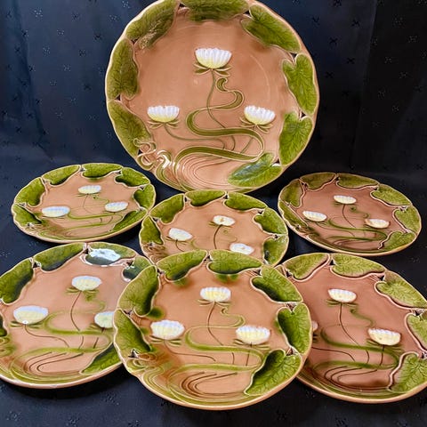 Søt lita, grønn majolika mugge fra Sadler, England