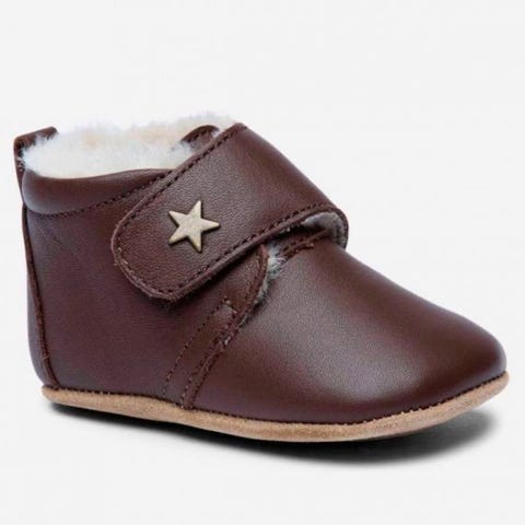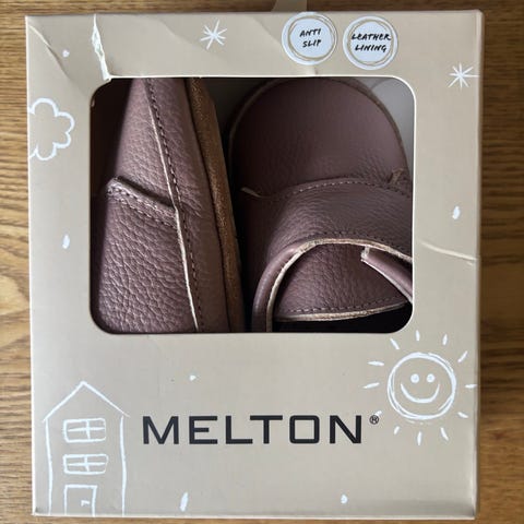 Melton tøfler for barn, unisex, størrelse 23-24. Skoene er laget av lær og designet for å passe små føtter.
