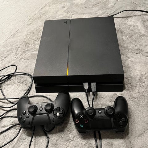 Playstation 4 slim med standard design og svart farge. Inkluderer kontroller og HDMI kabel. Ikke strømkabel men kan muligens ordnes vis helt nødvendig
