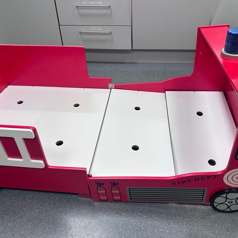 This is a Jenny Lind spindle-style wooden baby cradle or bassinet. Comes with mattress and covers.