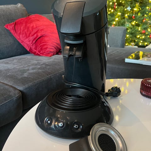 L'OR Barista kapselmaskin i hvit farge med kompakt design. Maskinen er laget for å gi kvalitetskaffe med enkel bruk av kapsler. Den har en moderne utforming og passer for hjemmebruk.