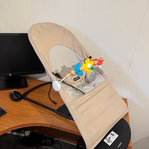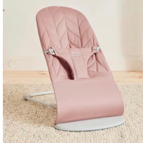 Babybjörn Bliss Vippestol Barnestol Rosa med sort understell, leke og mesh trekk