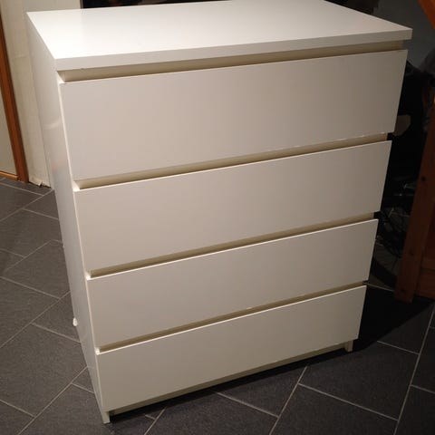 Gir bort malm kommode, må hentes i Stavanger. Gis bort på grunn av flytting. Den mangler noen planker over skuffende. Dette er kun for syns skyld.