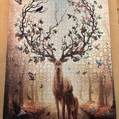 Ravensburger 1000 brikker puslespill med naturmotiv. Puslespillet viser et landskap med fjell, vann og blå himmel.
