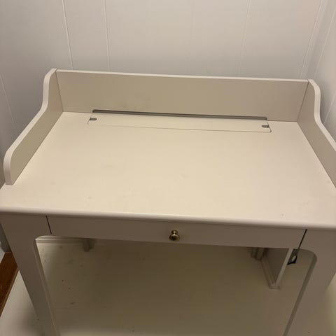 Ved siden av skuffen er det et praktisk lokk som skjuler både speilet og praktiske rom. Uansett om du bruker det som sminkebord, skrivebord eller sidebord.