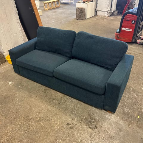 Sofaen er godt brukt men fortsatt stødig og god. Trekket kan vaskes.