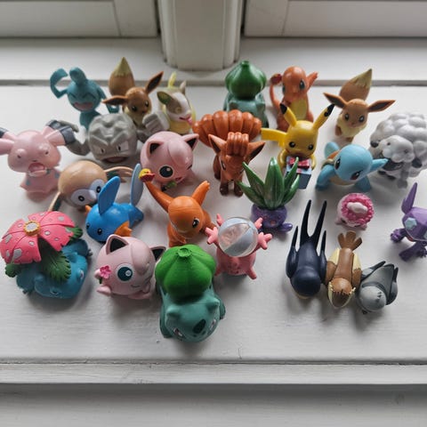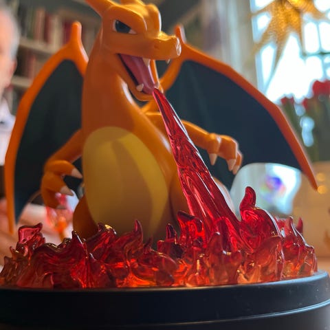 Nintendo Amiibo figurer av Lucario og Charizard. Figuren Lucario er i original emballasje, og Charizard kommer med ekstra tilbehør.
