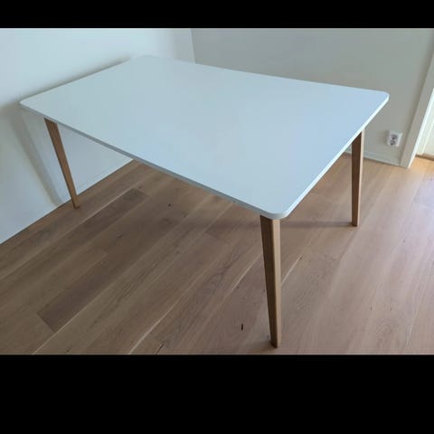Godt brukt spisebord selges billig. Perfekt som ekstrabord til nyttårsaften. Bordet er 170 cm langt og 105 cm bredt. Det følger med to ileggsplater, som er 48 cm brede hver.