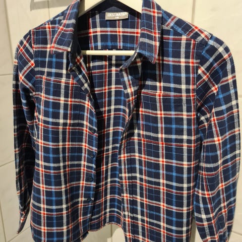 Fint brukt skjorte str.146. Farge: Blå-rød-hvit. Ingen slitasjemerke.
