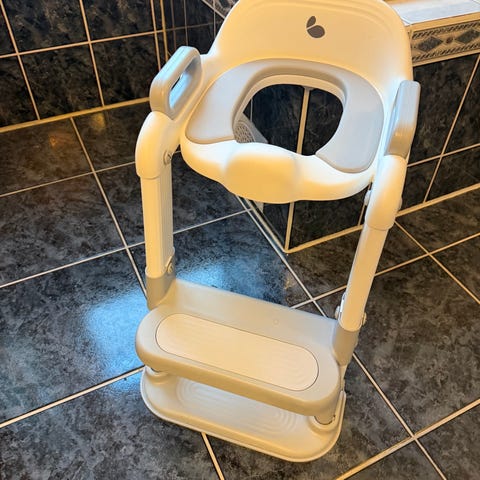 Selger ubrukt dosete med trapp for småbarn. Har ikke blitt brukt da vårt barn bare bruker potte. Kan sendes eller møtes i Oslo eller asker.