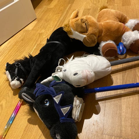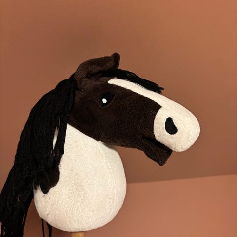 En er udekorert fra Panduro. Alt av dekor (øyne man etc) kan kjøpes der for å lage sin egen kjepphest.