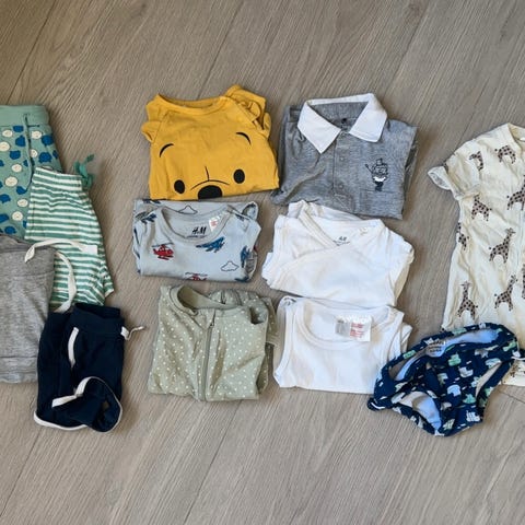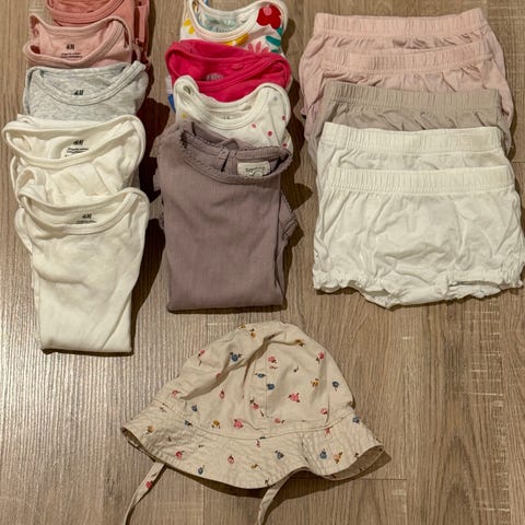 - 7 bodyer med kort arm (fra HM, KappAhl og en deilig i bambus fra Hust and Claire)