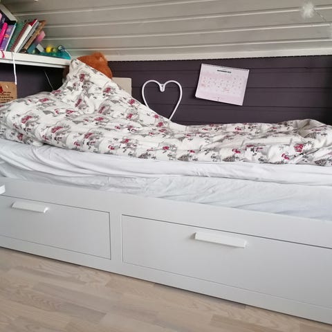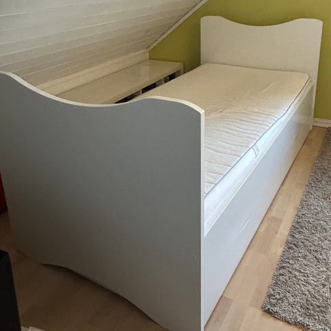 Kan trekkes ut og gjøres om til dobbeltseng.