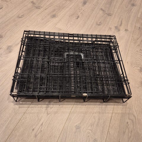 Hundebur i svart metall med sammenleggbar funksjon. Passer til bruk for hunder, kan enkelt pakkes sammen for oppbevaring eller transport.