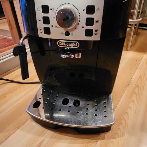 Selger meget pent brukt DeLonghi helautomatisk kaffemaskin med bønnekvern og mulighet for produksjon med melk for cappuccino.
