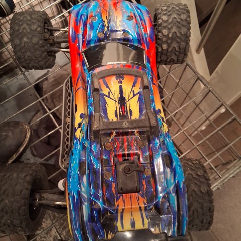 Dette er en radiostyrt bil med 2.4 GHz fjernkontroll. Bilen har firehjulsdrift og fart på 65+mph