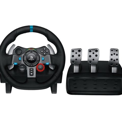 Logitech G Driving Force GT ratt og pedalsett med aluminiums midtmarkør, stål girspaker, børstet aluminium, 24-punkts selektor og ratt med lærtrekk. Inkluderer ratt, pedaler og strømadapter. Egnet for simracing. Med girstang.