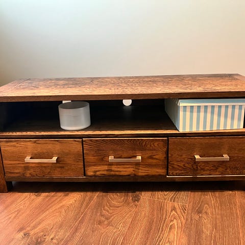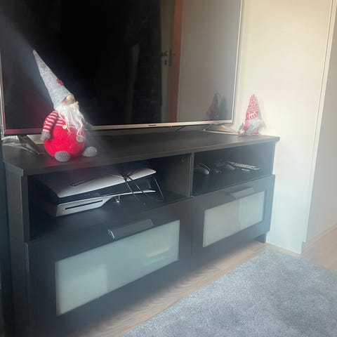TV-benk som ikke er alt for stor, passer akkurat til tv og spill konsoller, plass til å gjemme bort småting i skapet. Kan hentes eller så kan jeg levere for 150kr❤️