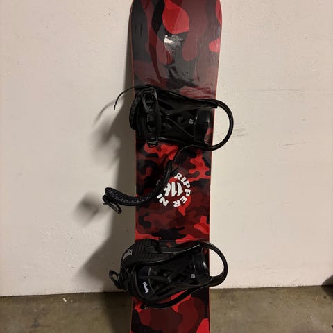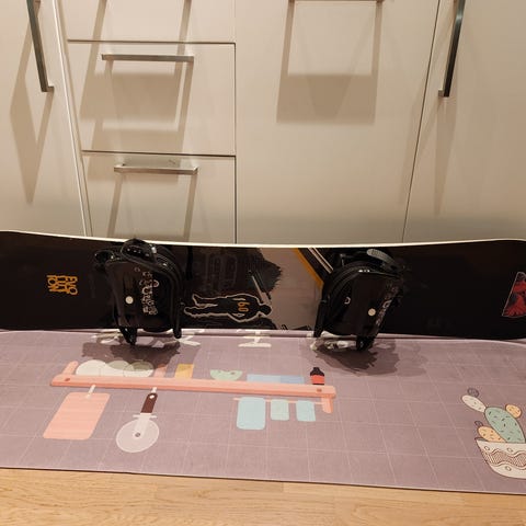 Snowboard av merket Frost med Firefly bindinger. Brettet er i veldig god stand. Såle og stålkanter er ikke synlig brukt. Oversiden har ett lite merke i front, men ellers veldig pent