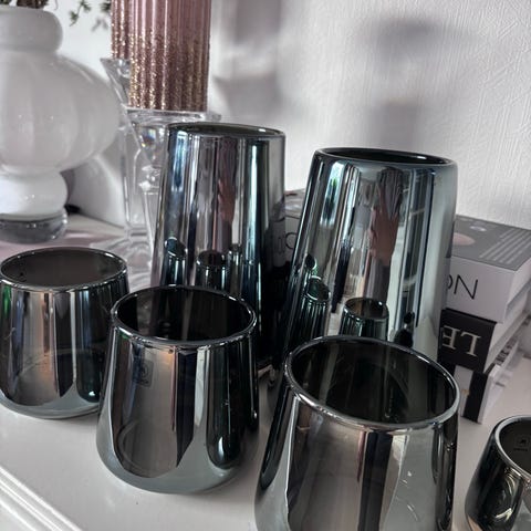 Magnor Glassverk Lysestaker i glass, svart og hvit