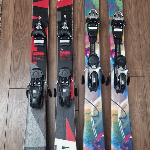 148 cm twin tip ski med to par støvler (39-42), så har man i flere år. Ny pris 3000 kr.
