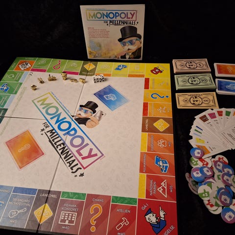 Inkludert: Spillebrett, plastdekored, 6x spillebrikker, 22x skjøtekort, 24x sjansekort, 14x prøv lykken-kort, 12 dekoderbrikker i papp, 12x hoteller, 2x terninger, pakke med penger, og spillveiledning.
